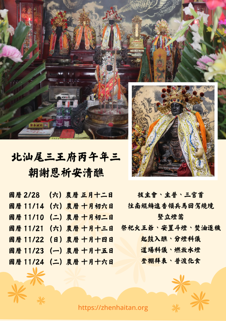 『北汕尾三王府丙午年三朝謝恩祈安清醮』建醮訊息公告
